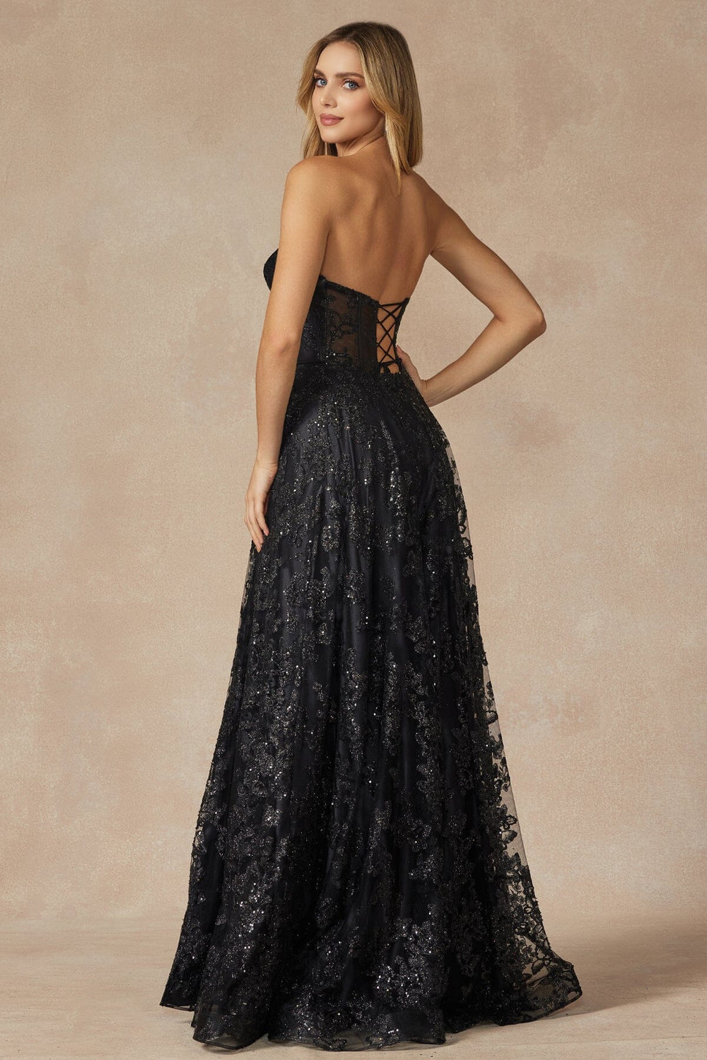 Satin Fitted Strapless Slit Gown by Rachel Allan 70779