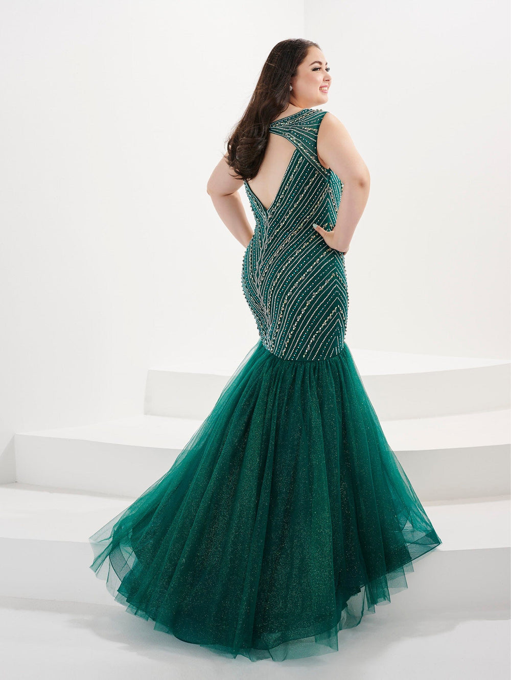 • Plus Size Beaded V-Neck Mermaid Gown by Tiffany Designs 16045