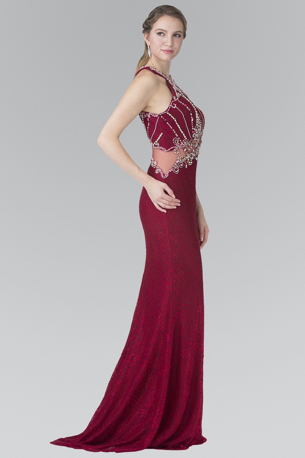 Beaded Lace Halter Dress with Illusion Waistline by Elizabeth K GL2275