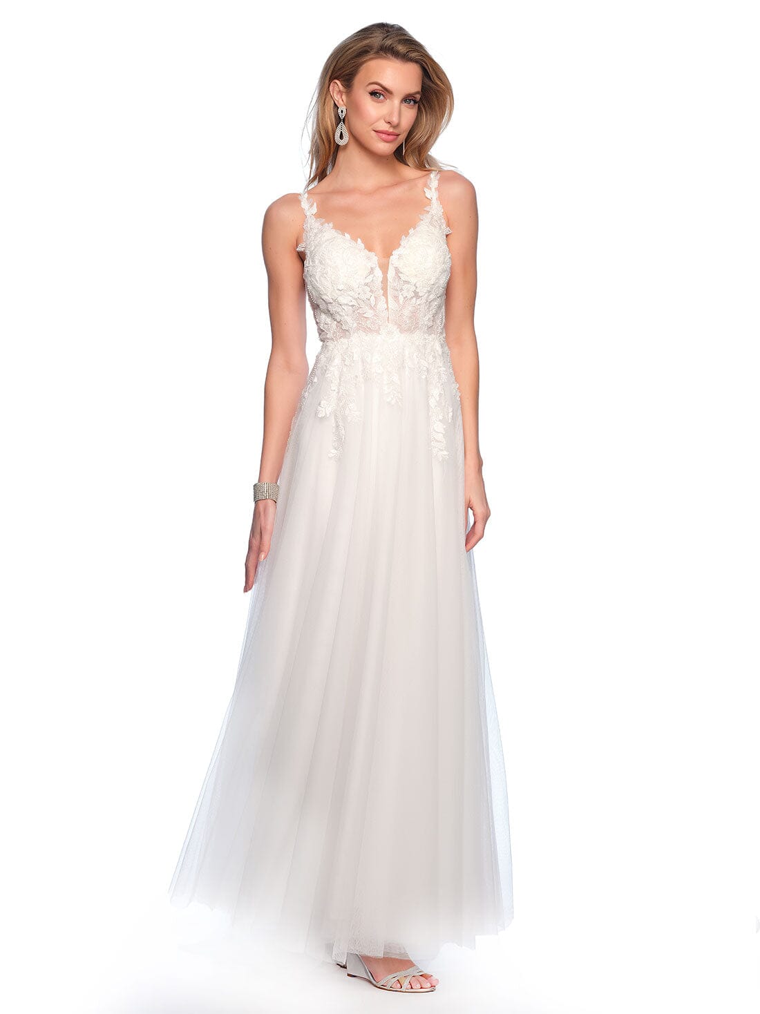 • Floral Applique Sleeveless Tulle Wedding Dress by Dave and Johnny 11946