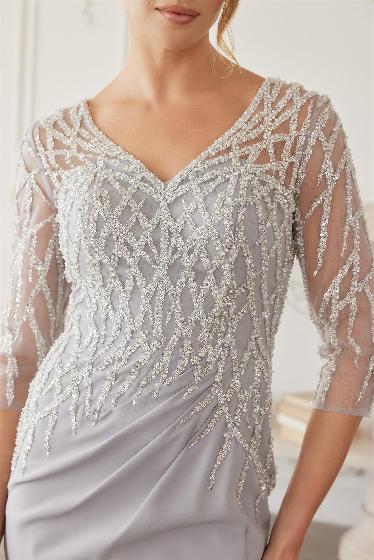 - Beaded 3/4 Sleeve Slit Gown by Nox Anabel MH161