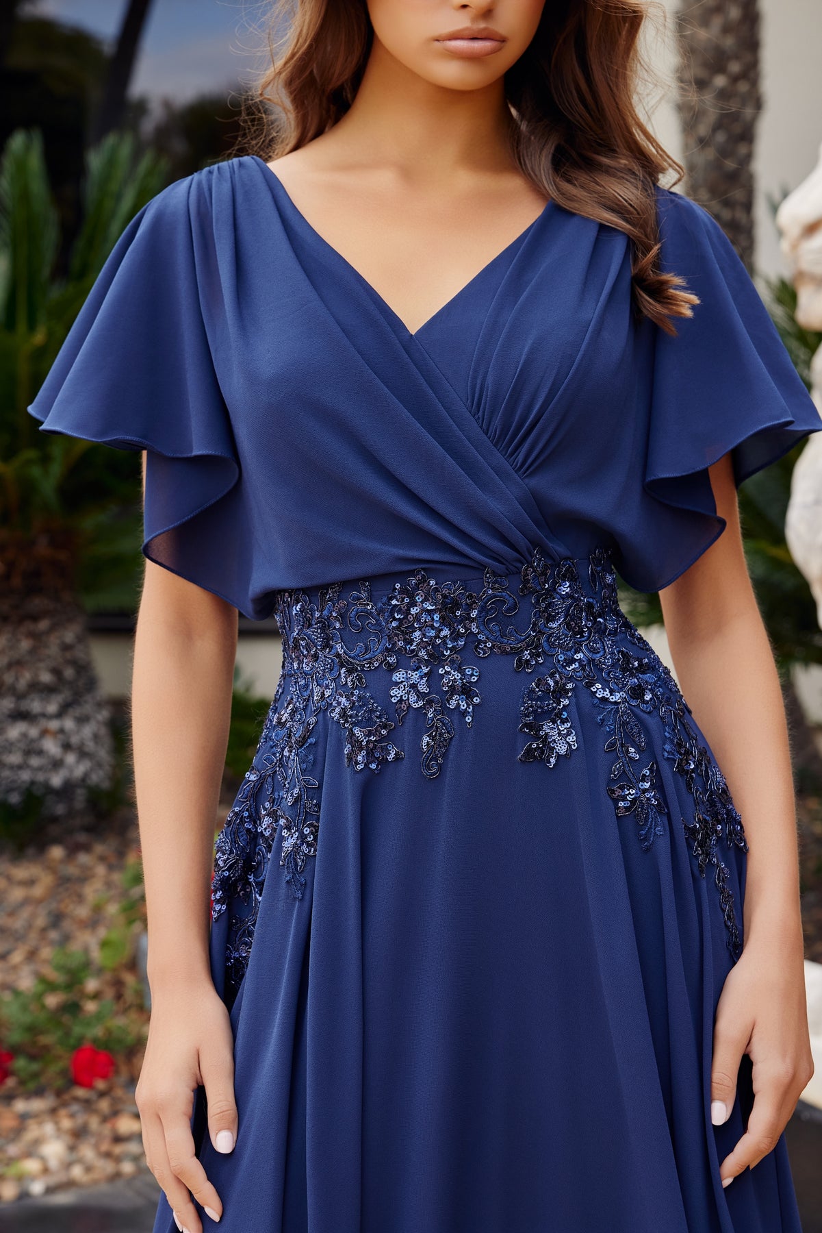 - Fabric: Chiffon, Embroidery, Beaded Embellishments, Polyester