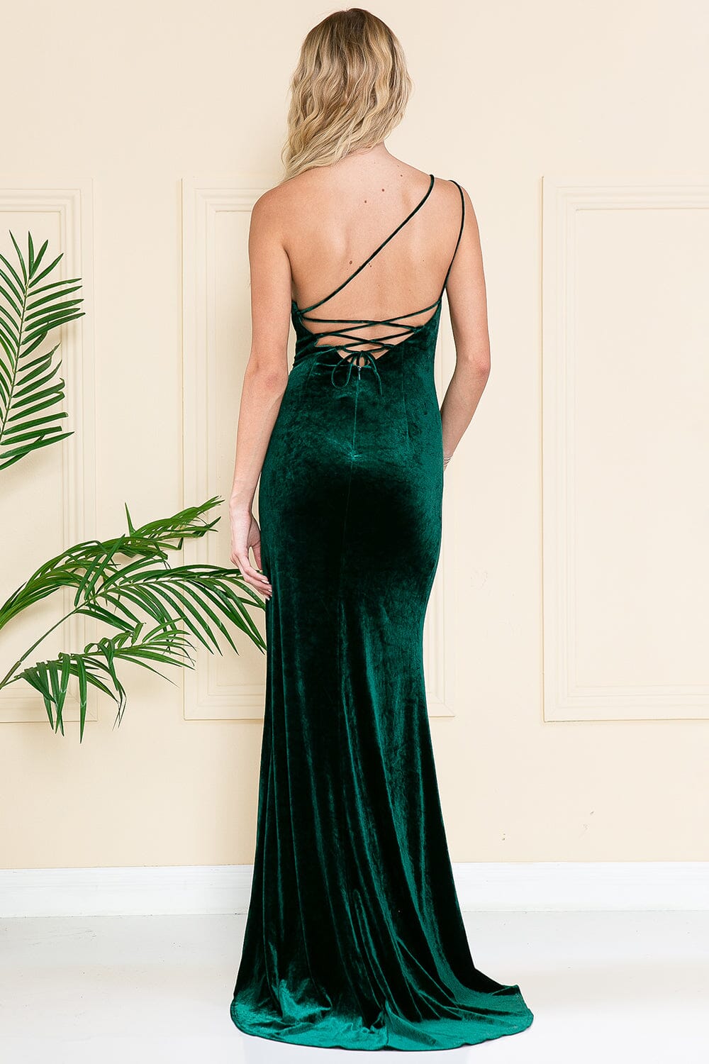 • Velvet One Shoulder Slit Gown by Amelia Couture 6118