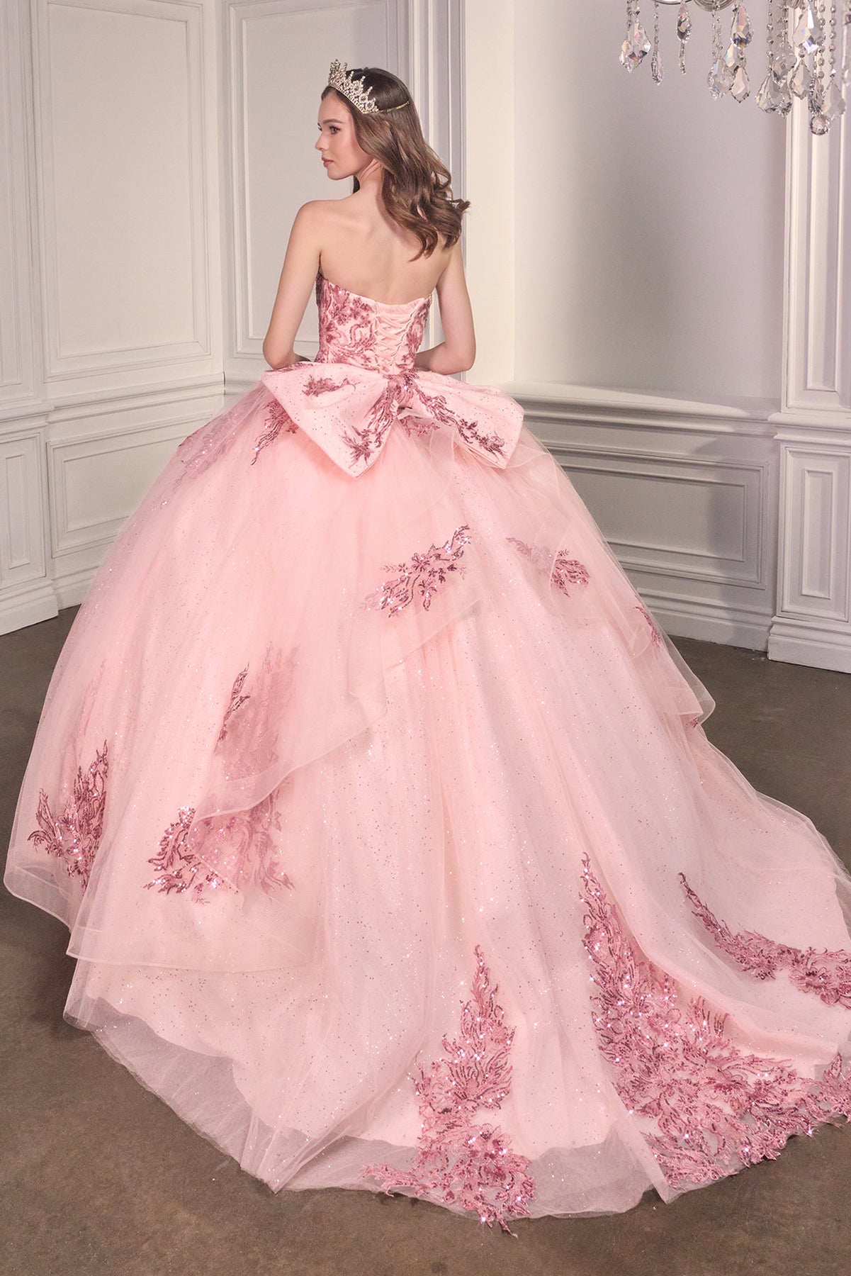 i got this dress for my quince earlier this year in baby blue and it was literally so beautiful! i was a bit hesitant at first because of the price but it was absolutely worth it. some glitter was lost while wearing it but it wasnt a ton of glitter. the bow was also detachab which i thought was pretty cool