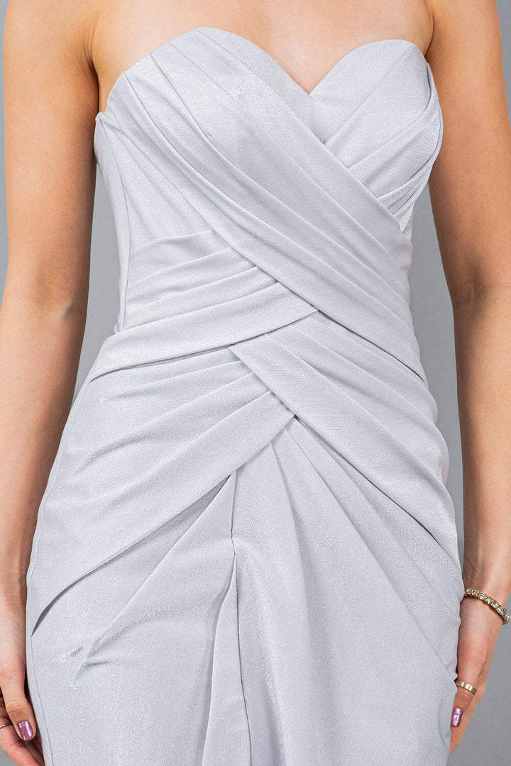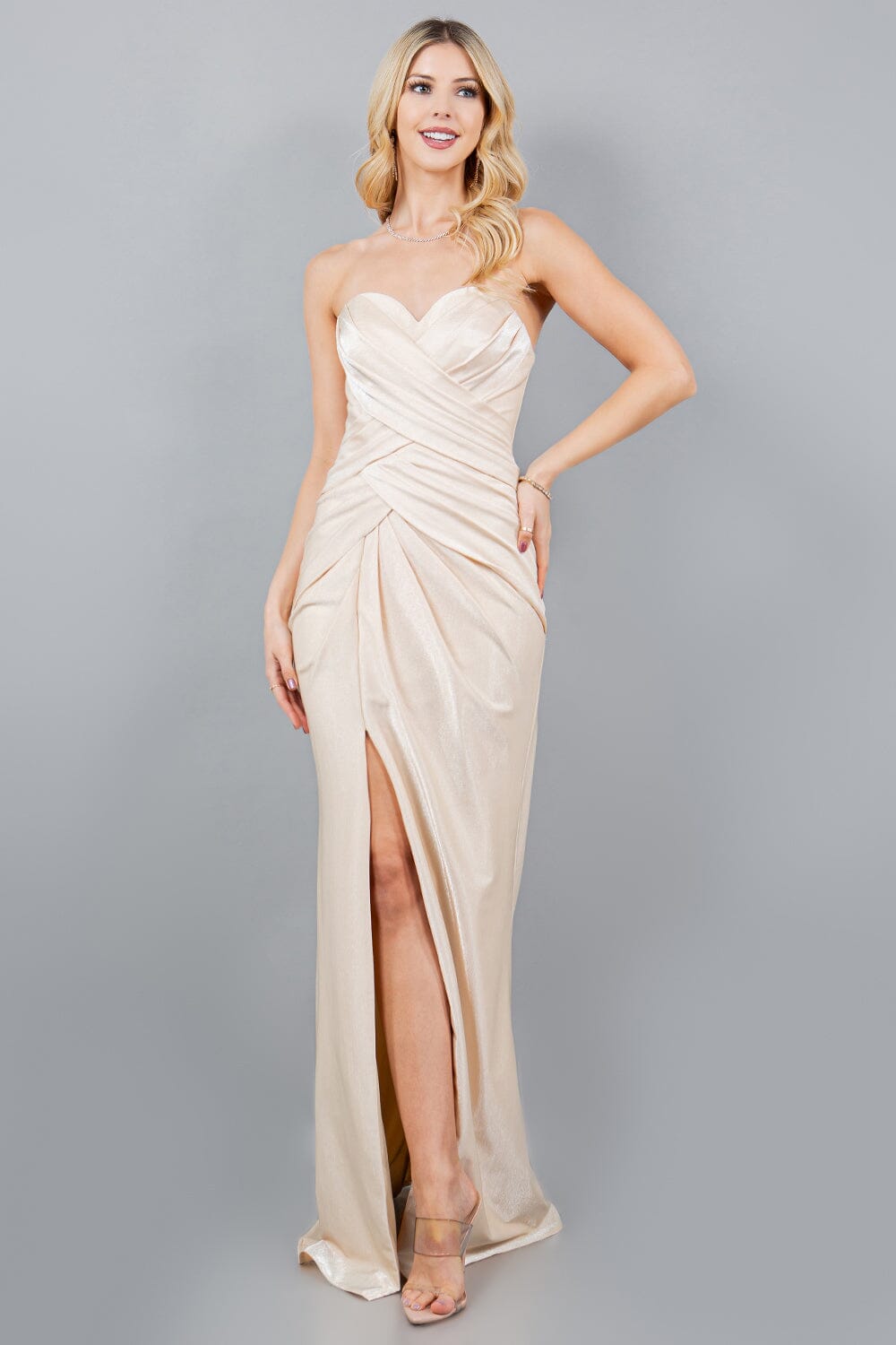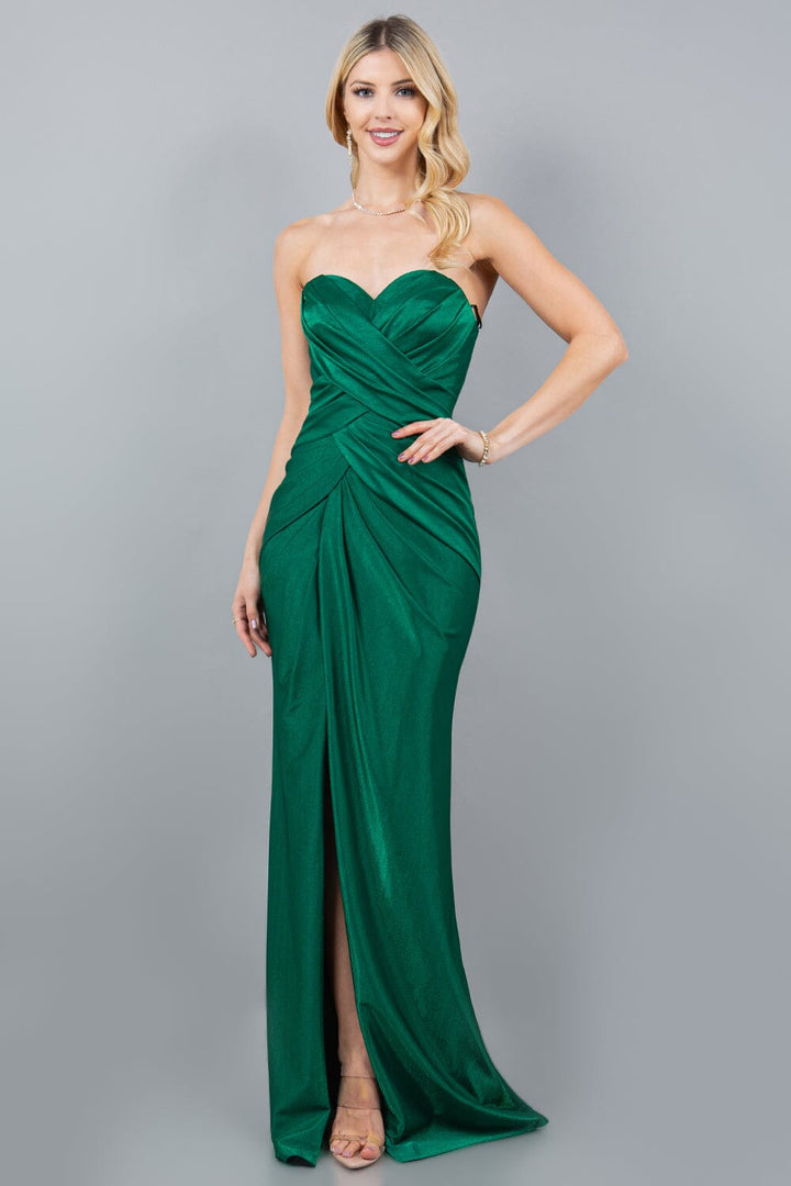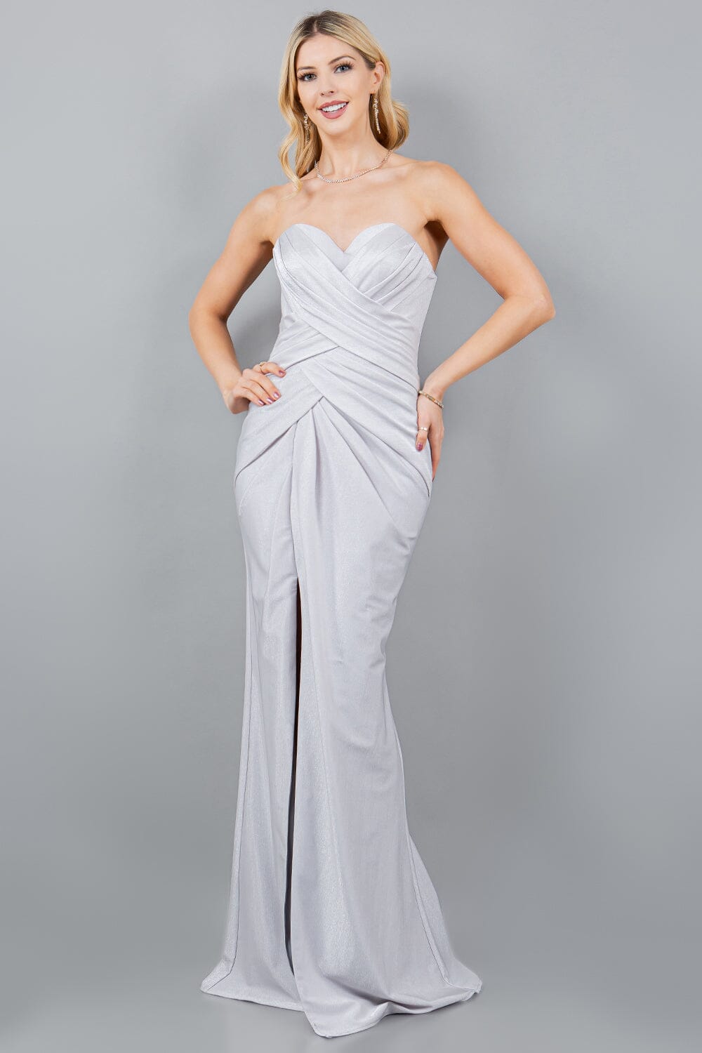 - Fitted Ruched Strapless Slit Gown by Cinderella Couture 8095J