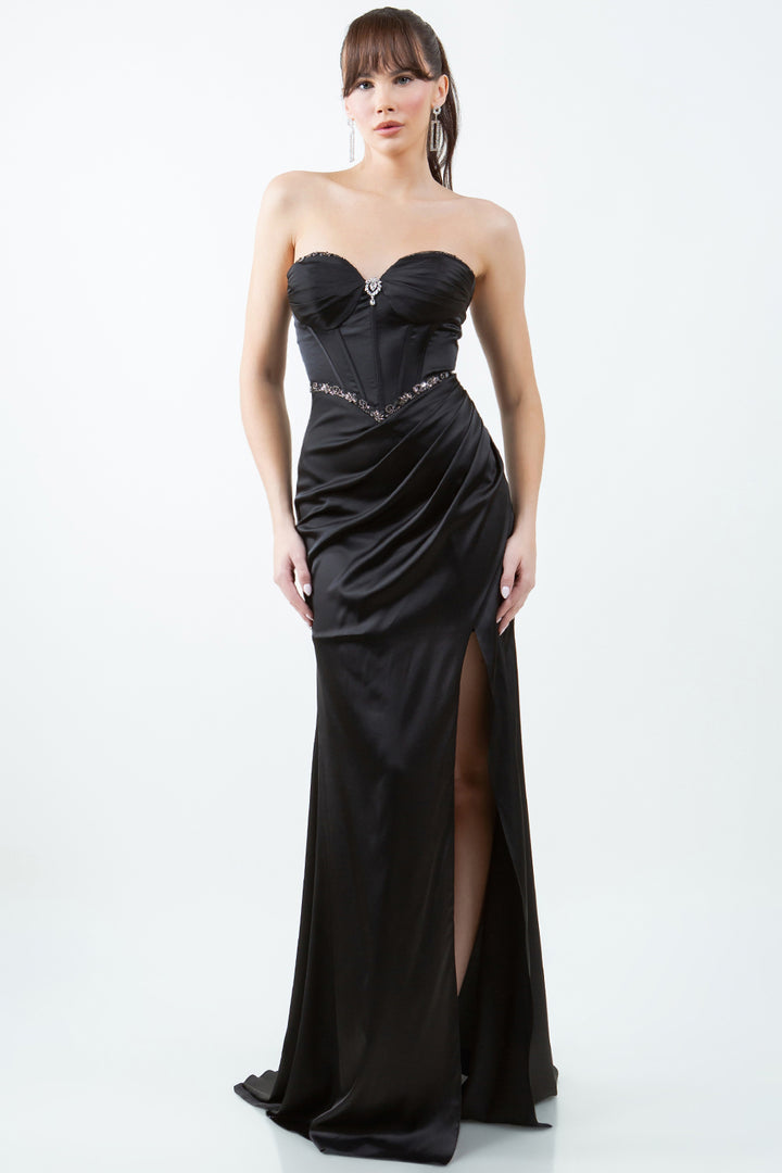 - Satin Strapless Slit Gown by Cinderella Couture 8259J
