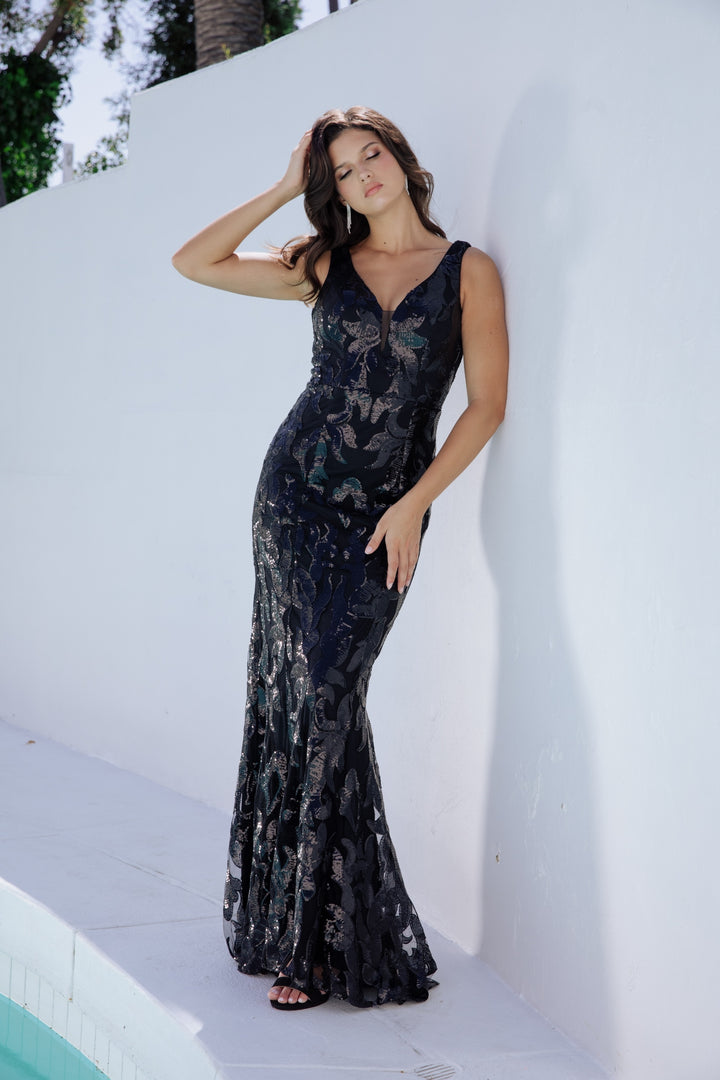 Sequin Print Fitted V-Neck Gown by Eureka EK101