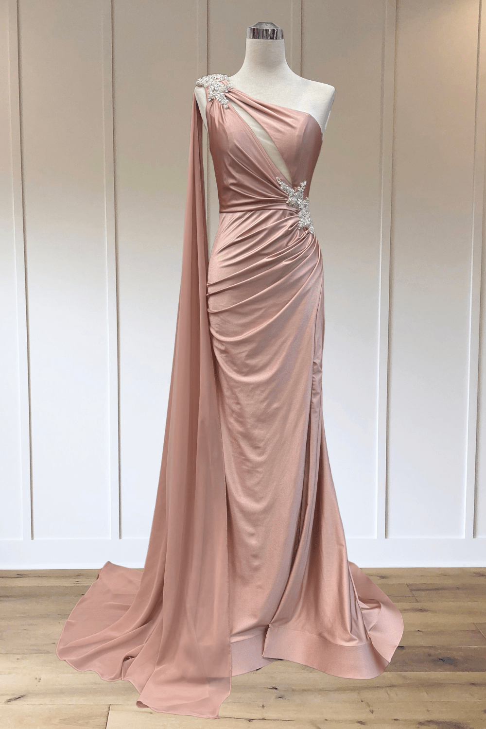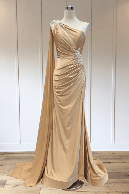 - One Shoulder Cape Slit Gown by Amelia Couture 7056