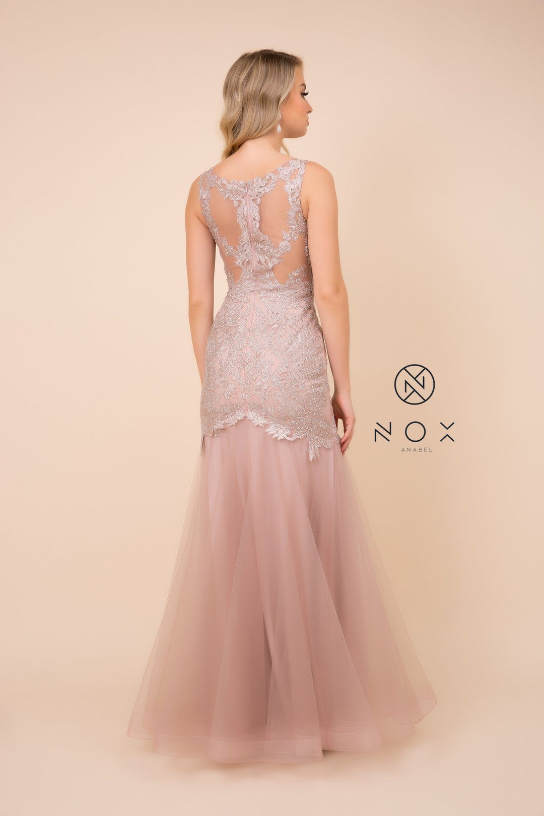 Lace Applique Sleeveless Mermaid Dress by Nox Anabel A396
