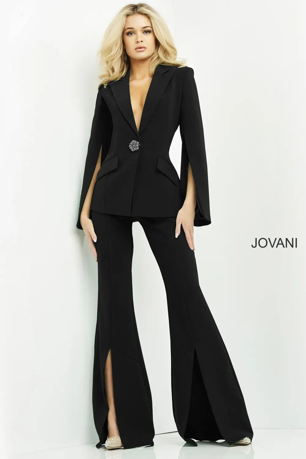 Single Breasted V-Neck Pant Suit by Jovani 06922