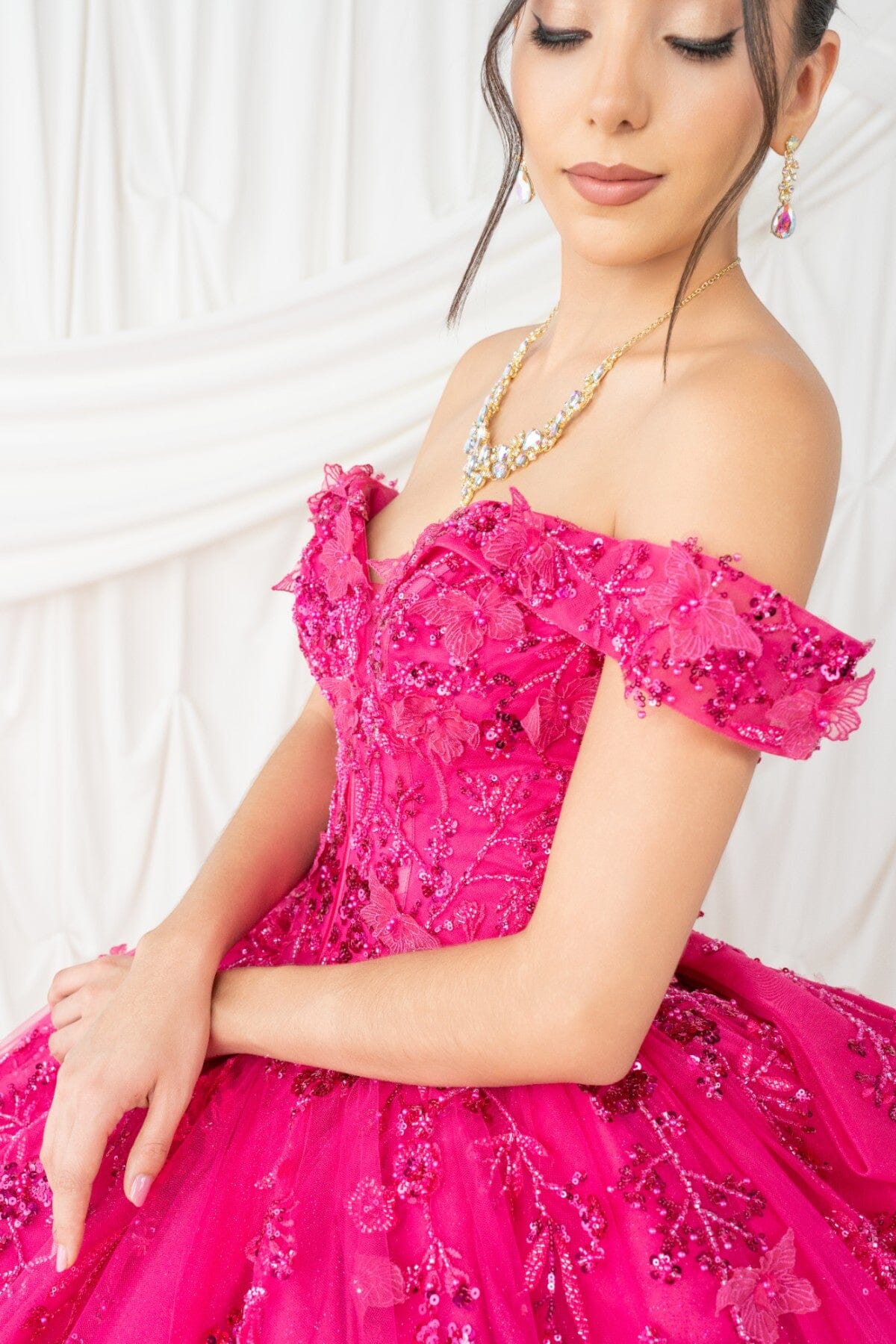 - 3D Butterfly Off Shoulder Ball Gown by Cinderella Couture 8111J