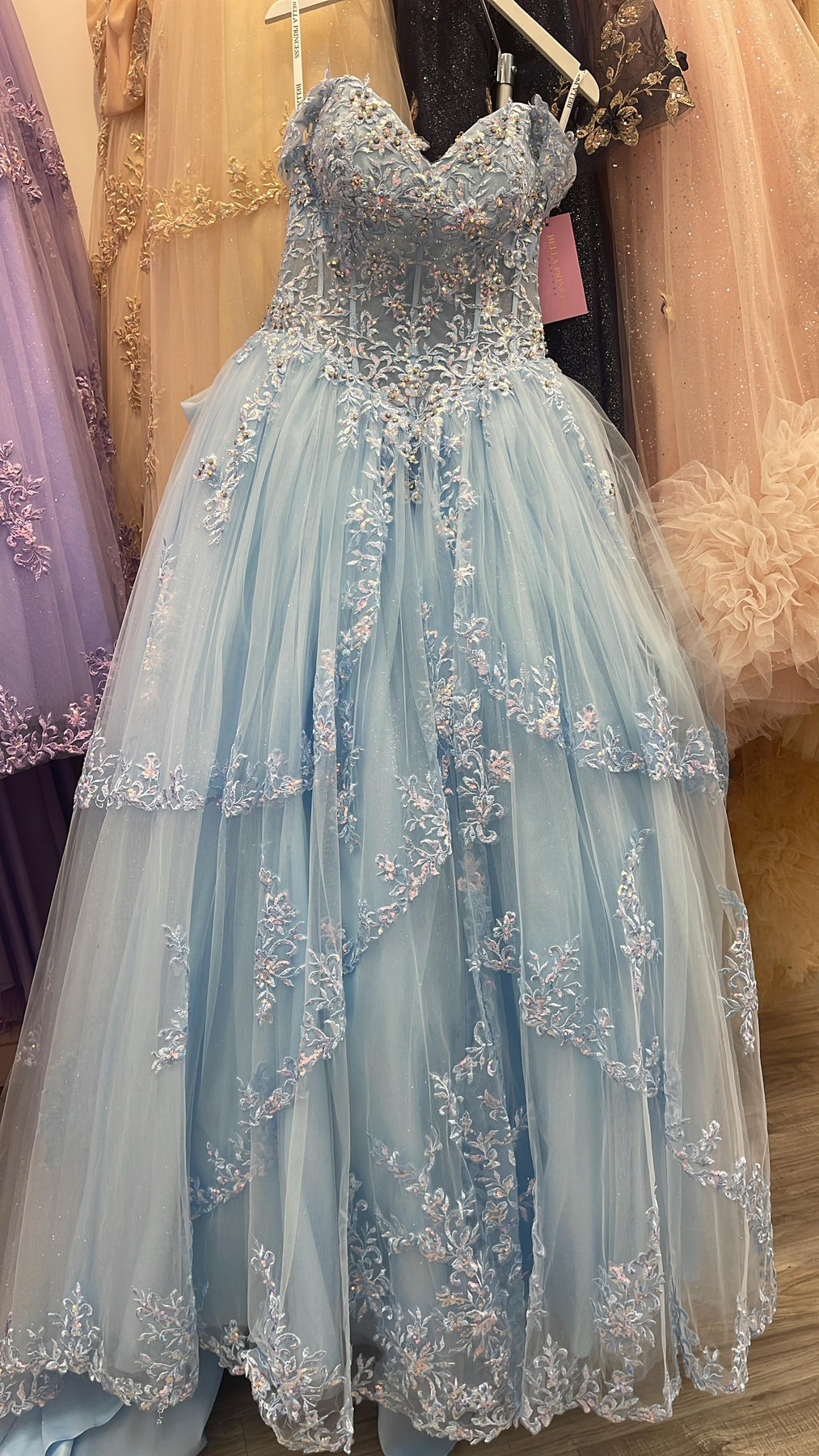 - Off Shoulder Corset Ball Gown by Petite Adele PQ1060