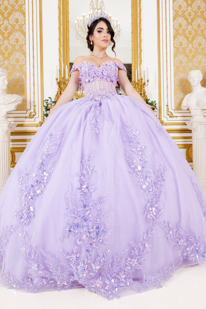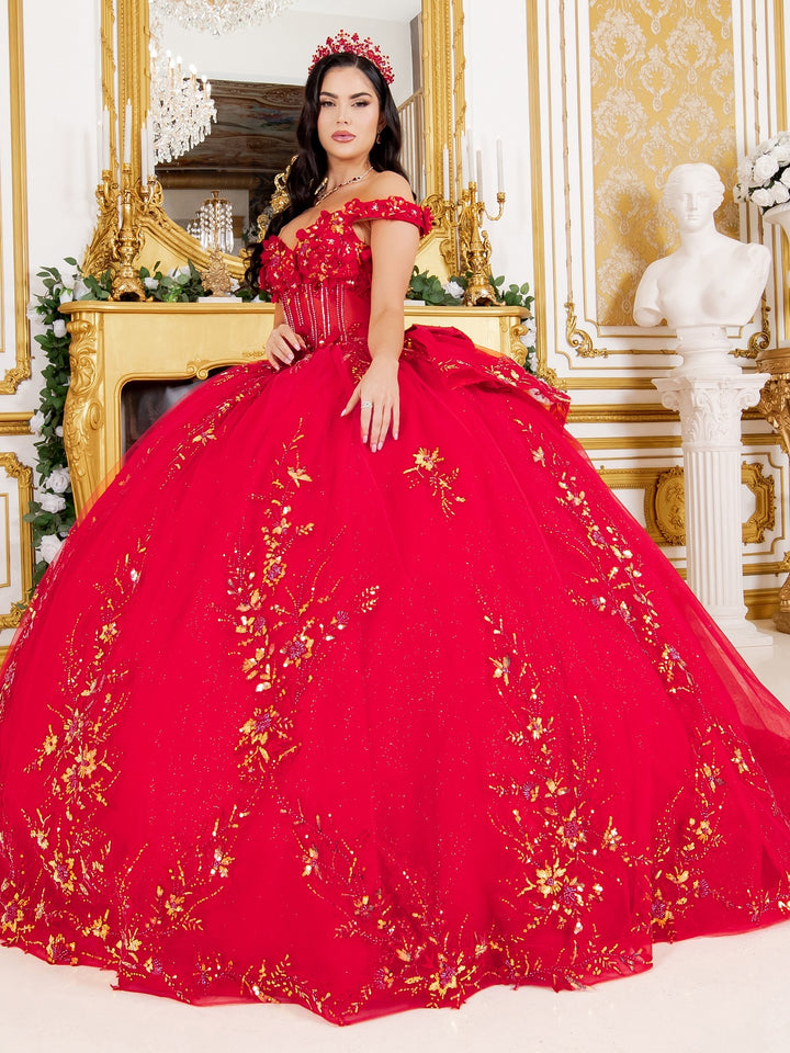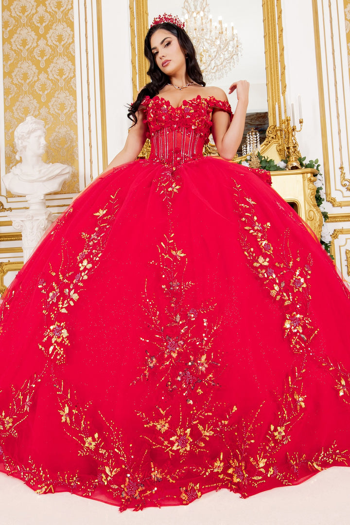 - 3D Floral Off Shoulder Ball Gown by Cinderella Couture 8160J