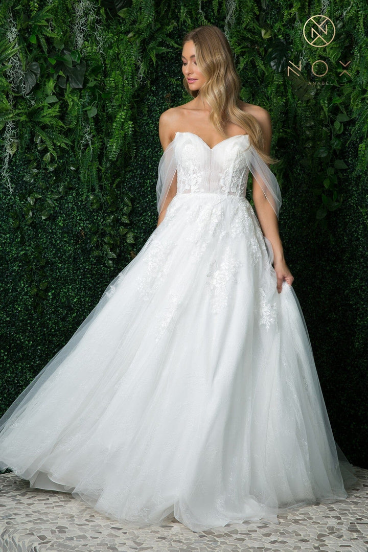 - Applique Off Shoulder Bridal Ball Gown by Nox Anabel JE946