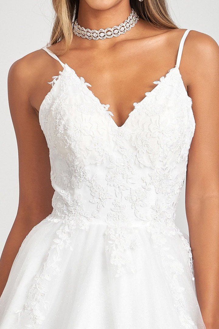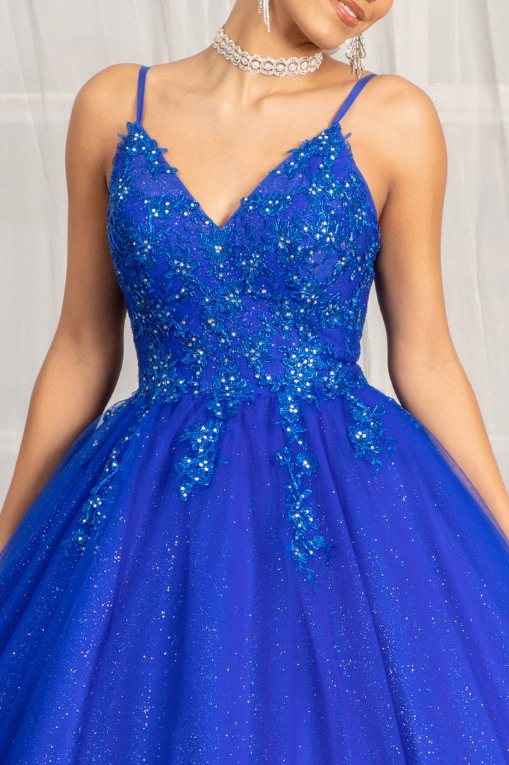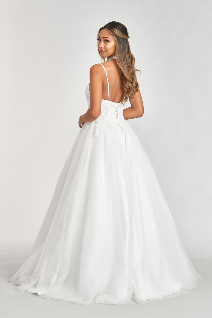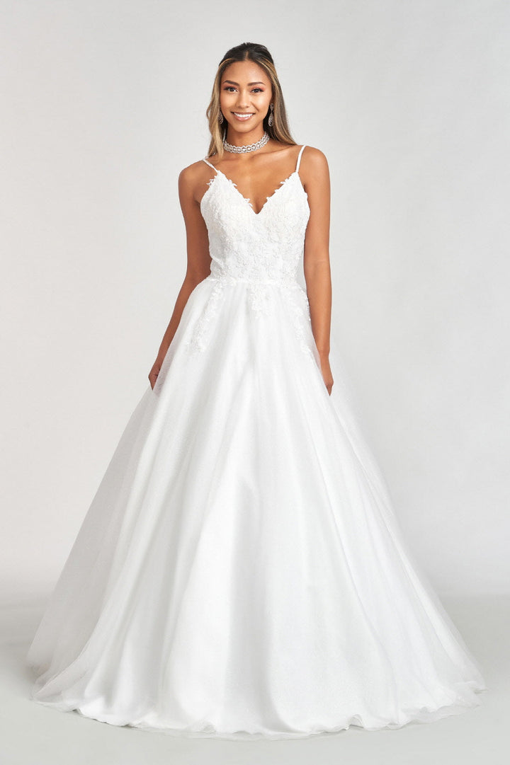 Look breathtaking in this embroidered long sleeveless V-neck dress with A-line skirt by Elizabeth K GL1989. This beautiful ballgown features spaghetti straps with classic V-neckline. Beautiful embroidery and sparkly jewels are decorated on the bodice.