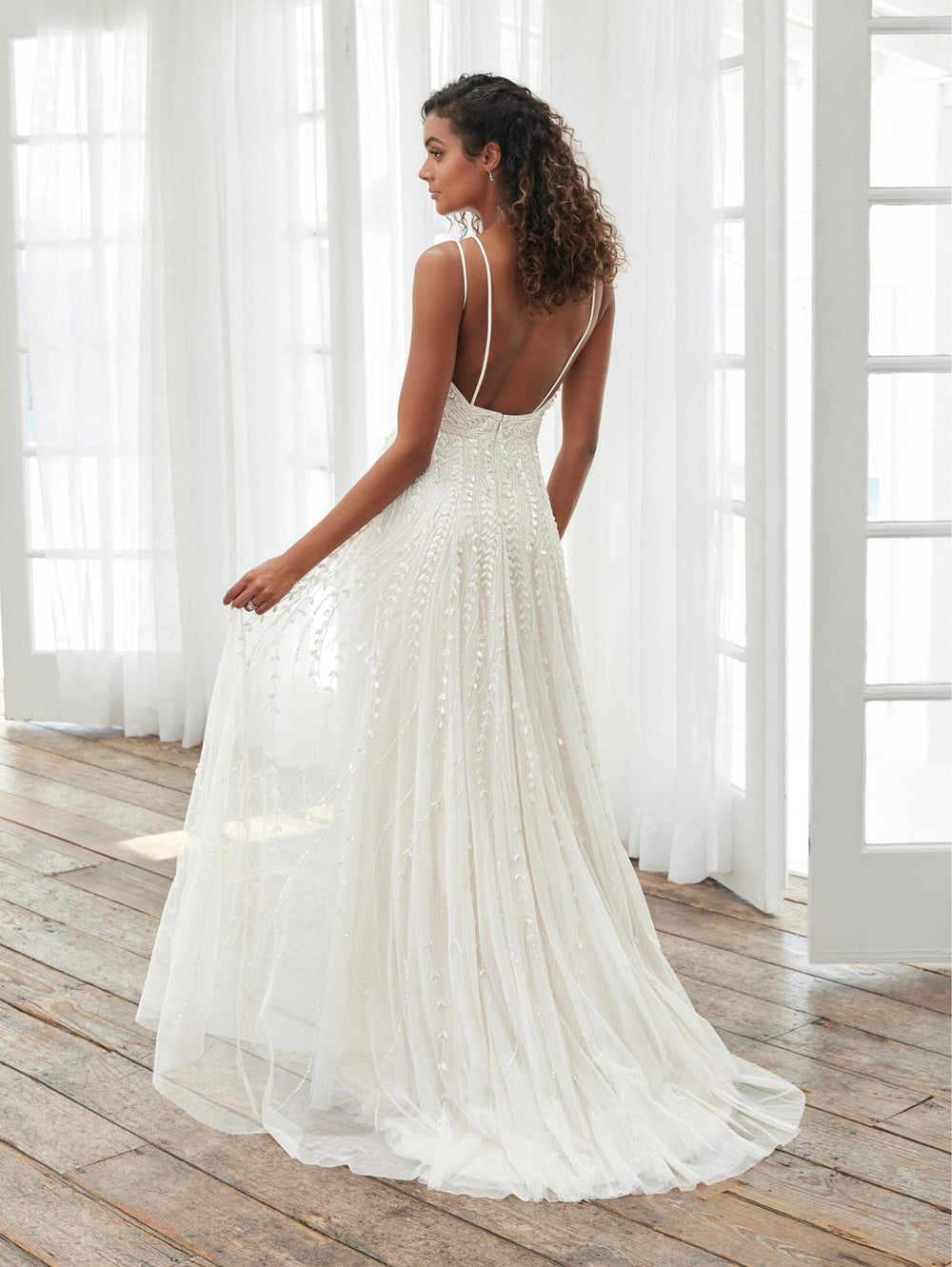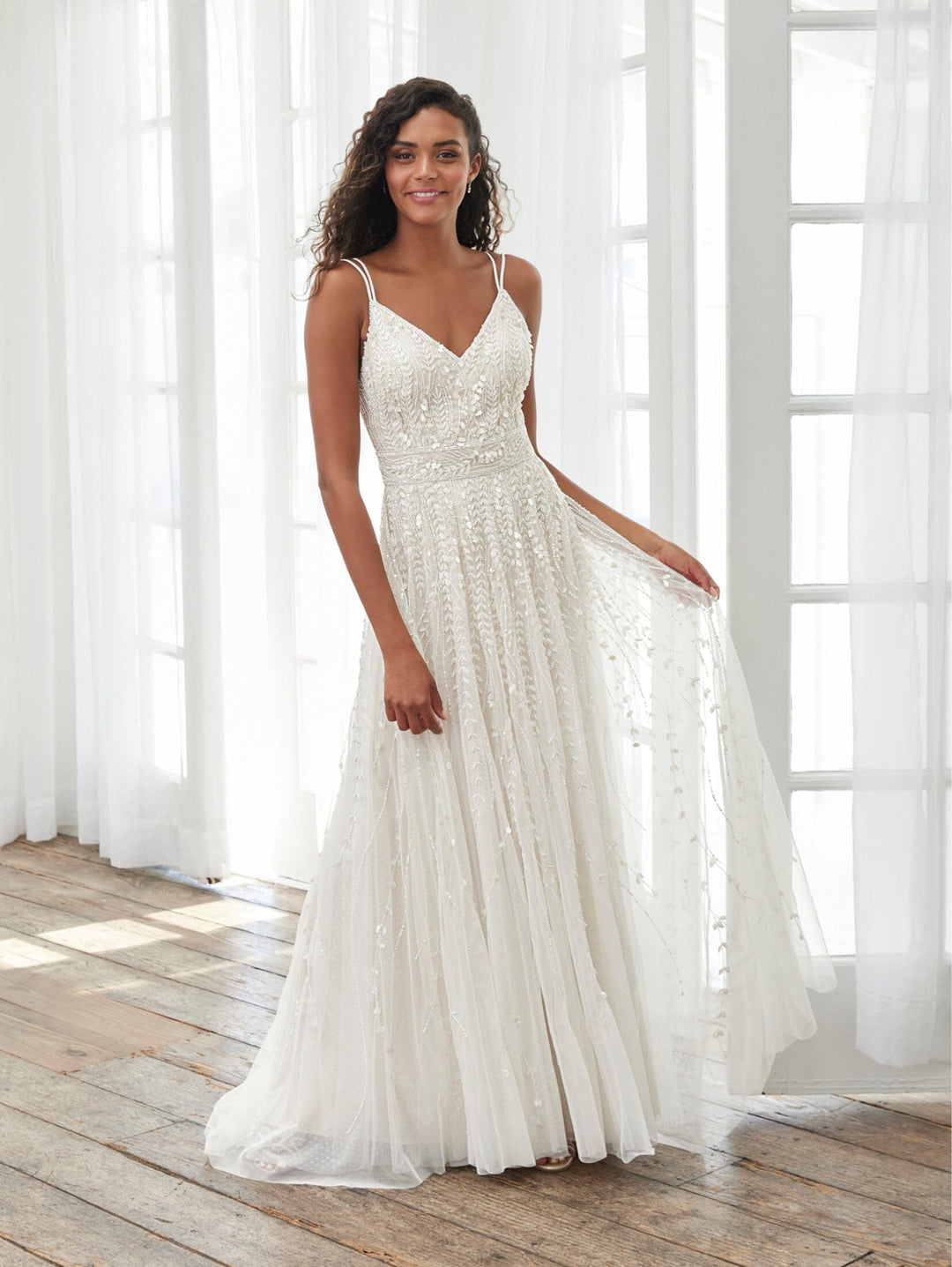 Captivate the room in our collection of affordable v-neck wedding dresses. From timeless designs to trendy details, you are sure to look unforgettable in our selection of bridal gowns.