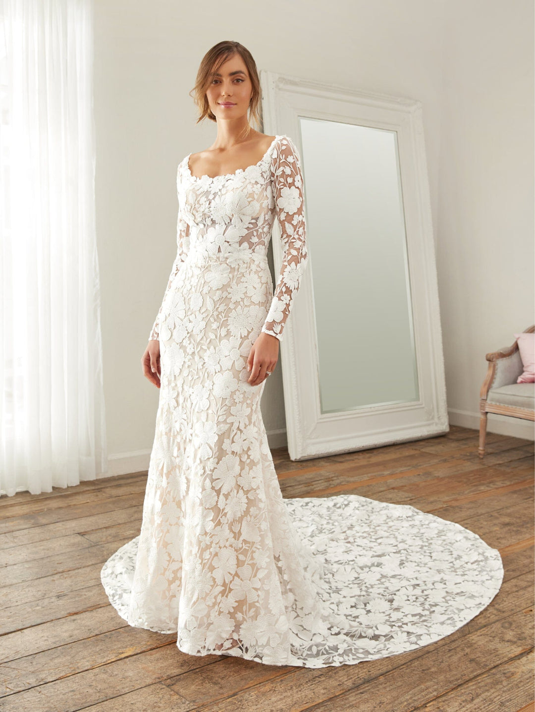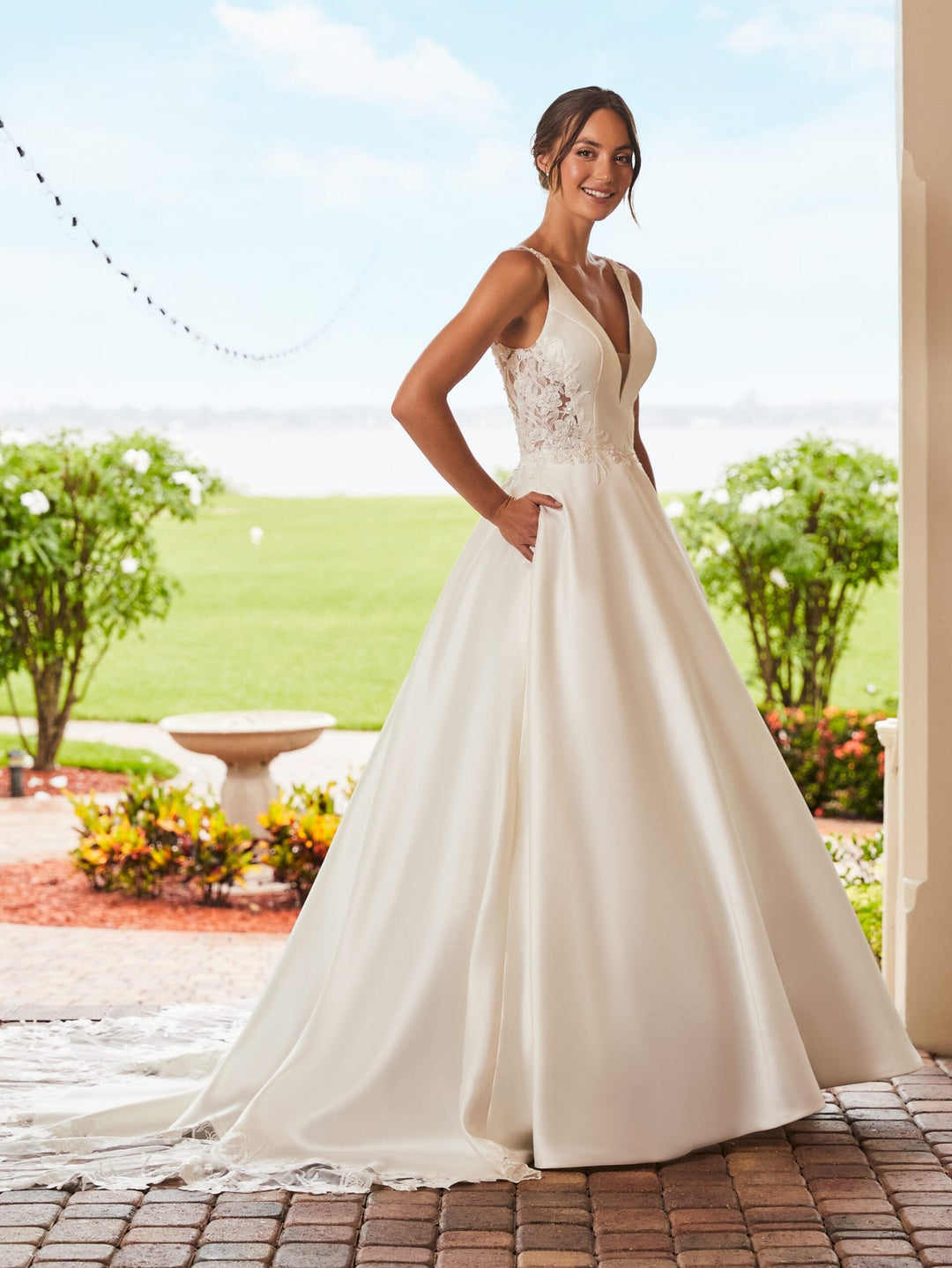 Captivate the room in our collection of affordable wedding dresses with train. From timeless designs to trendy details, you are sure to look unforgettable in our selection of bridal gowns.