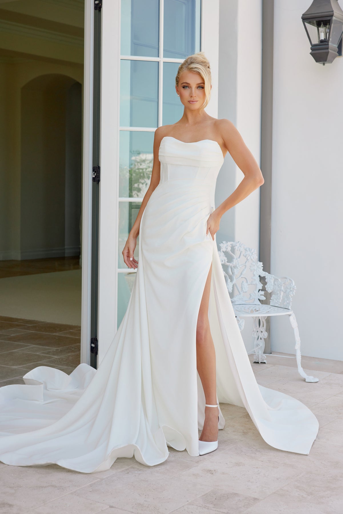 • Satin Strapless Slit Bridal Gown by Nox Anabel JW1035