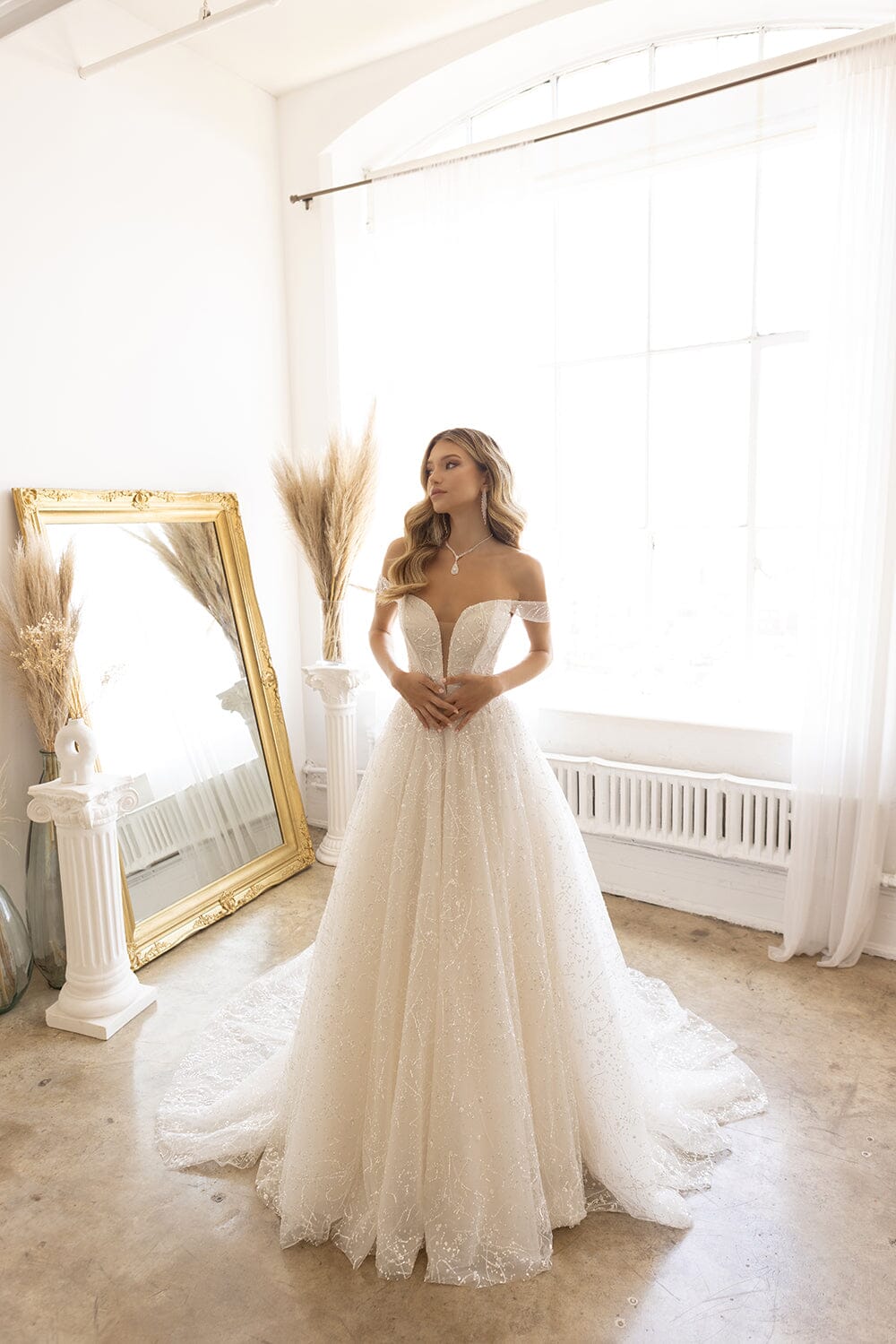 Captivate the room in our collection of affordable wedding dresses. From timeless designs to trendy details, you are sure to look unforgettable in our selection of bridal gowns.