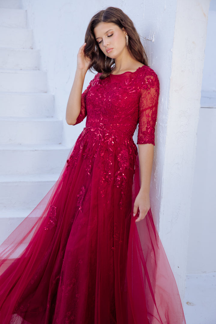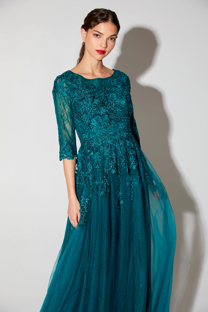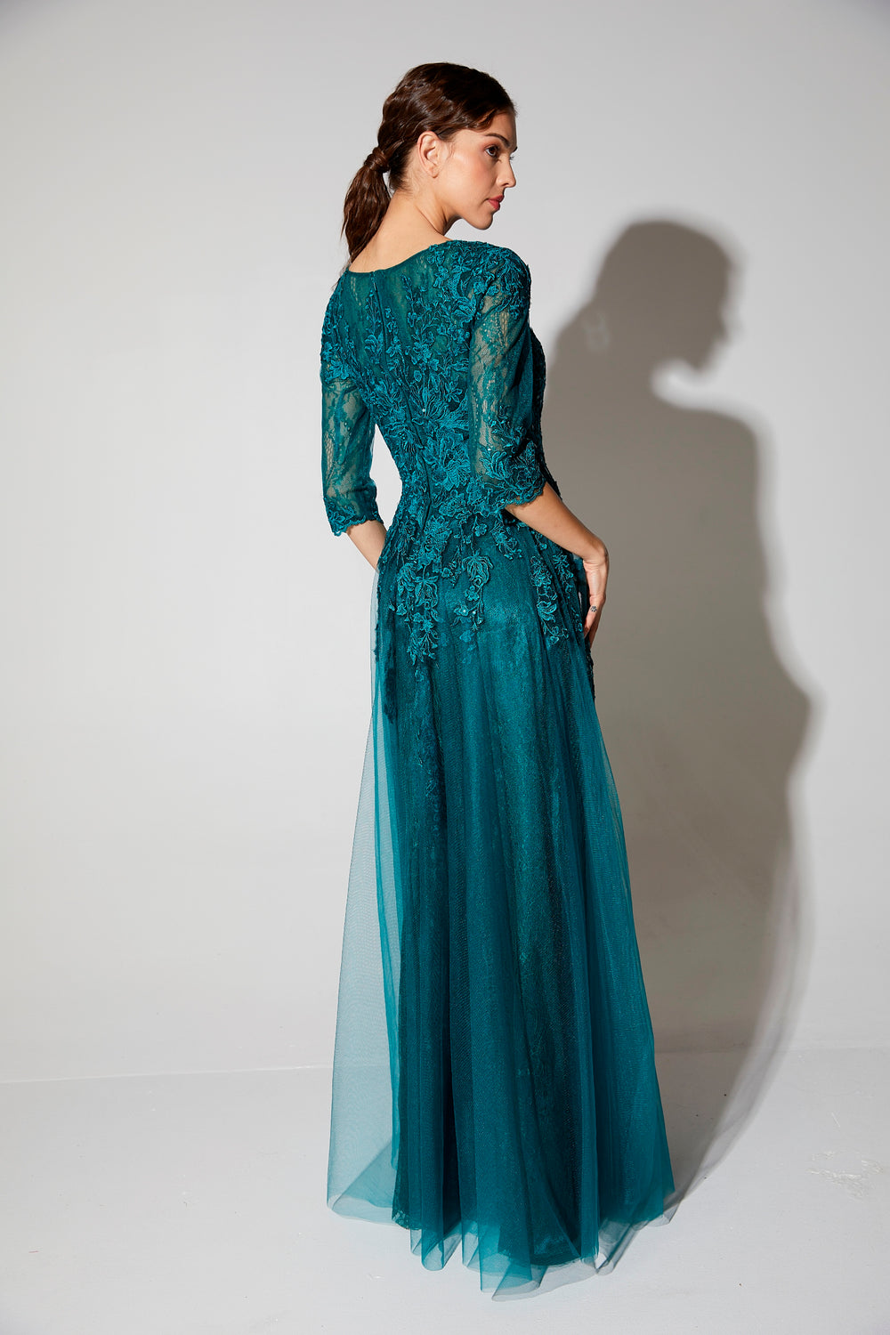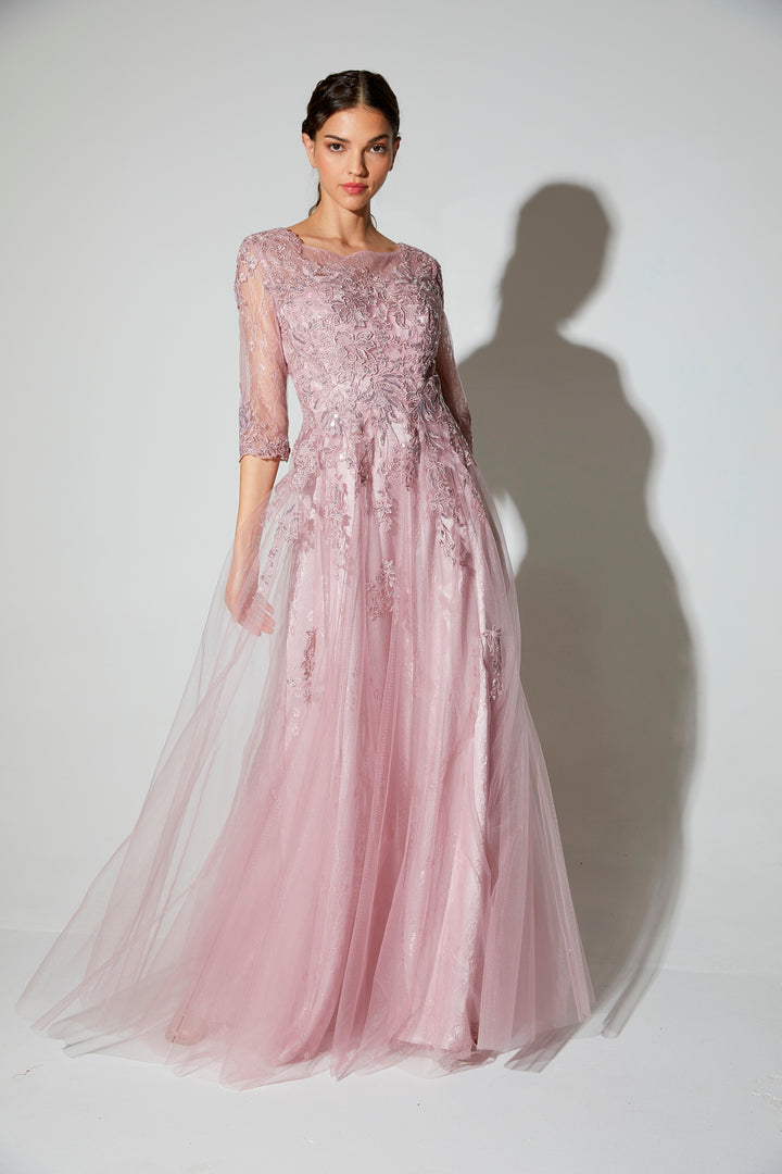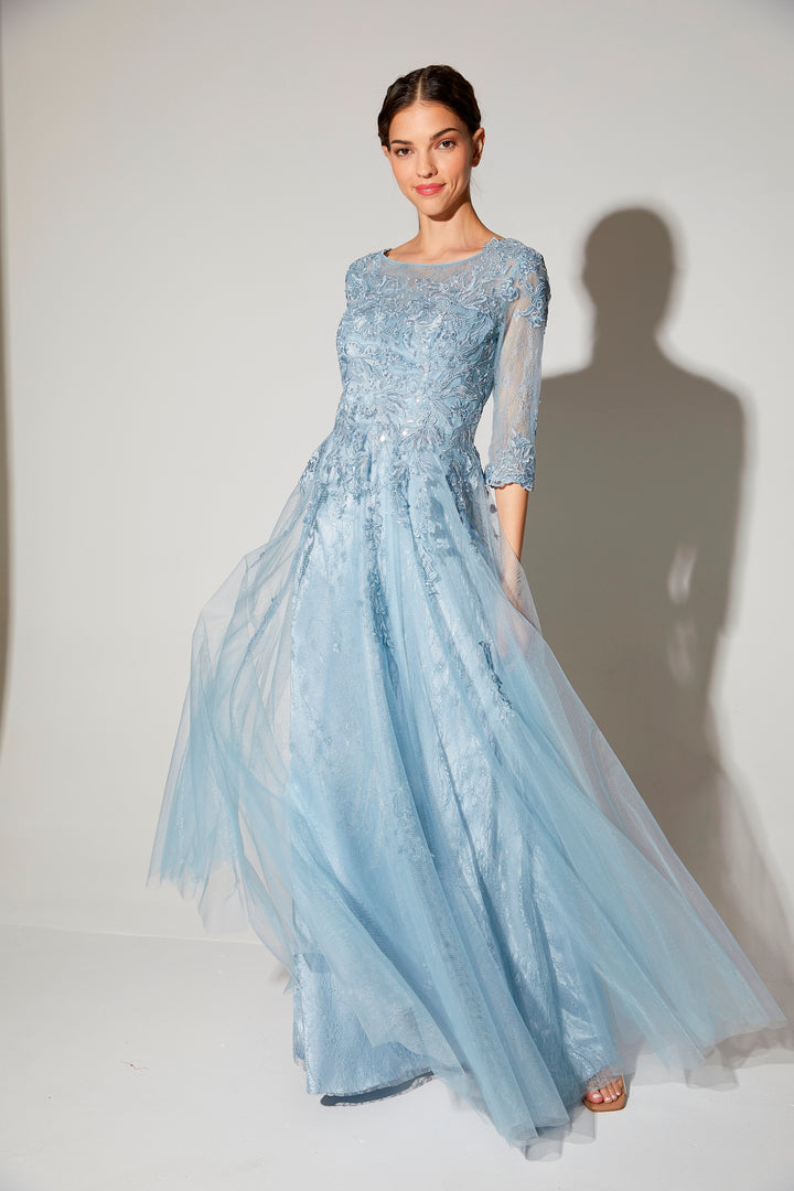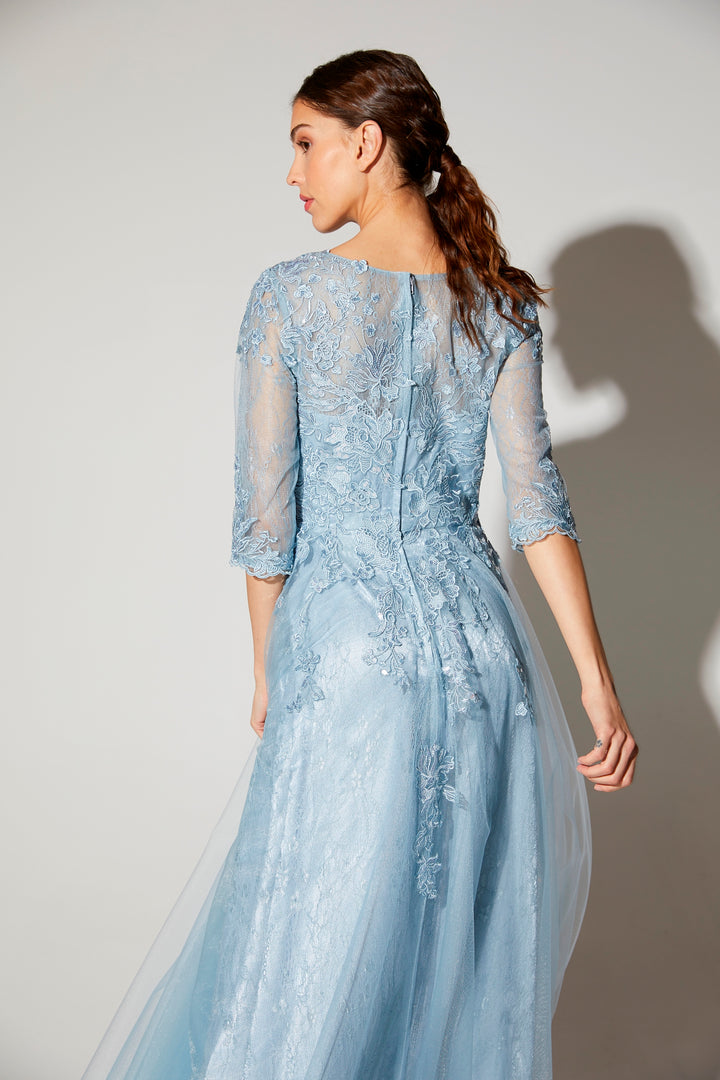 - Lace Tulle 3/4 Sleeve A-line Gown by Eureka 9660