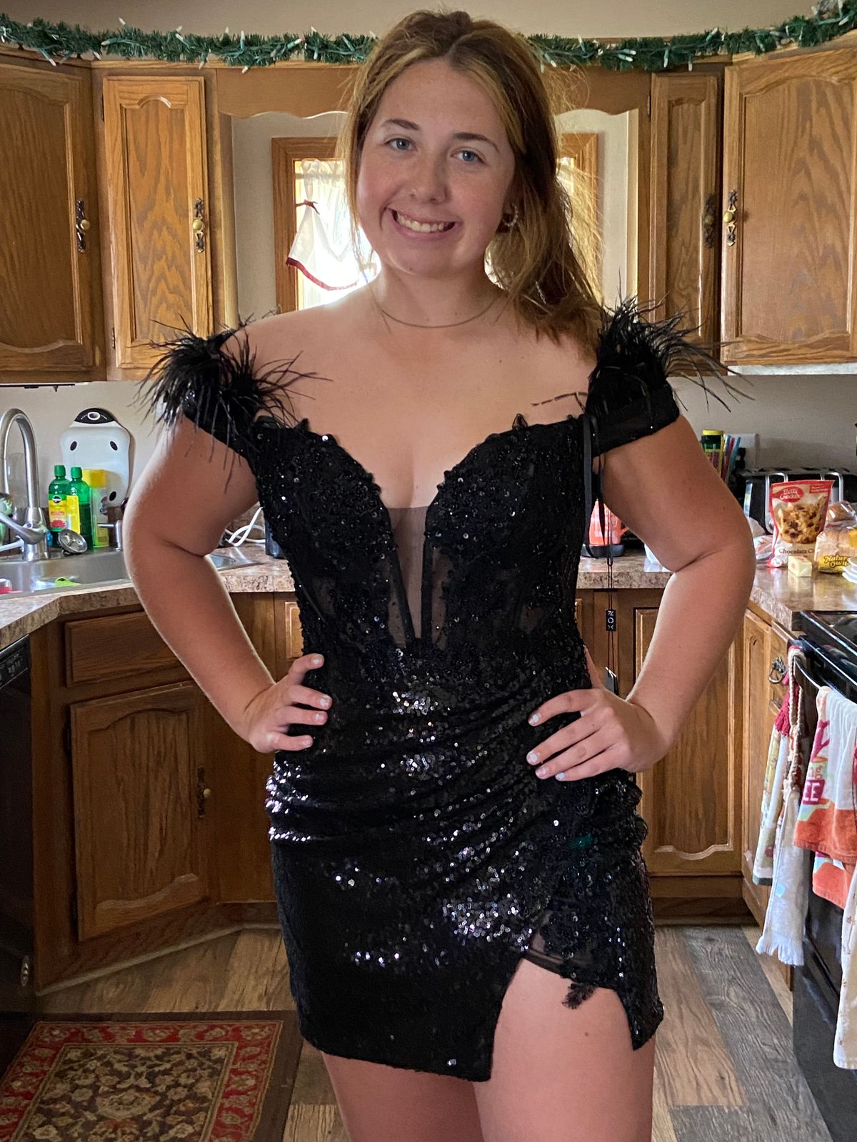 • Sequin Short Off Shoulder Feather Dress by Nox Anabel S782