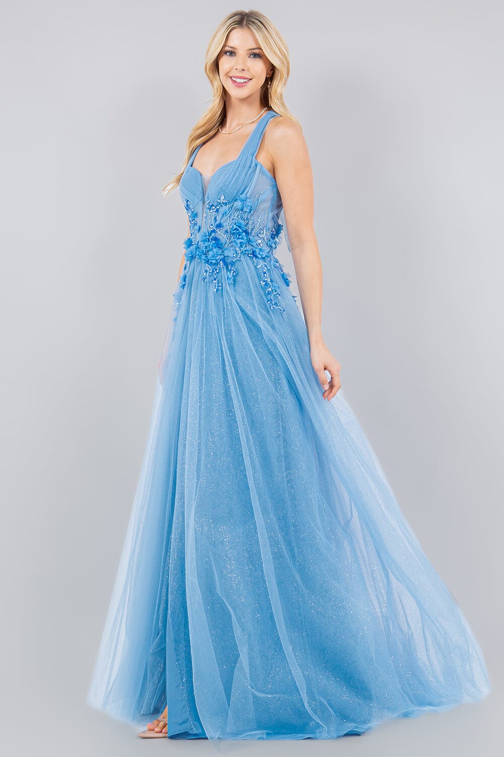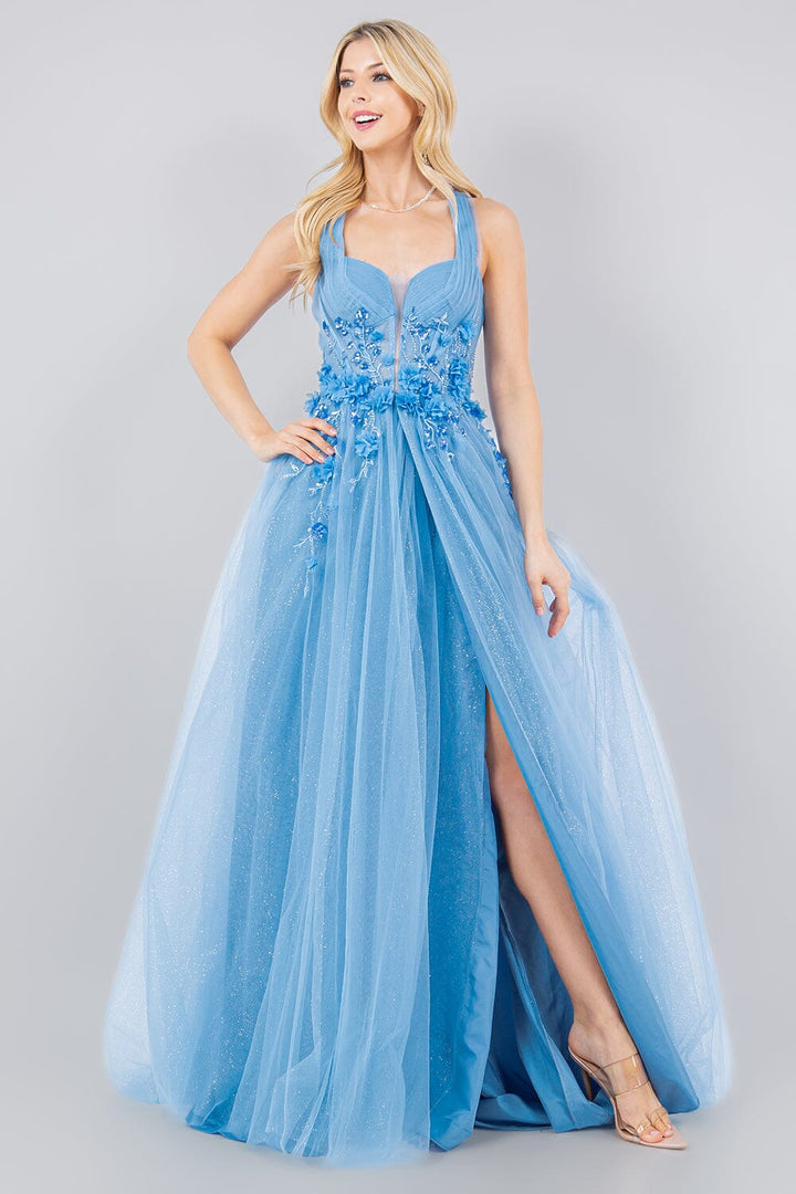 • 3D Floral Halter A-line Slit Tulle Gown by Cinderella Couture 8076J