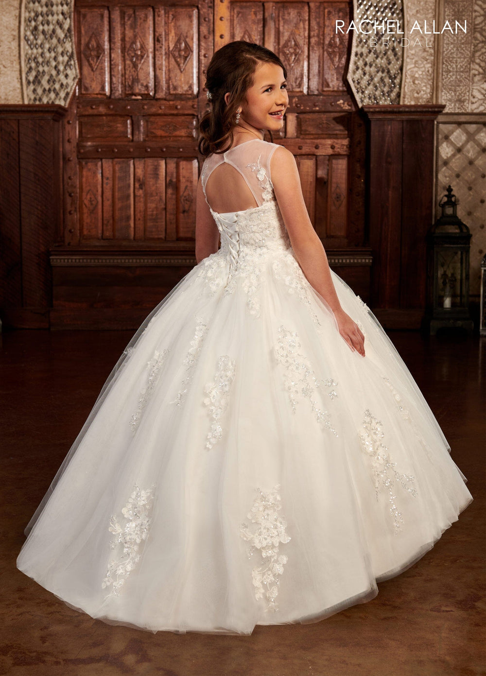Girls Applique Illusion Sleeveless Gown by Rachel Allan RB9136