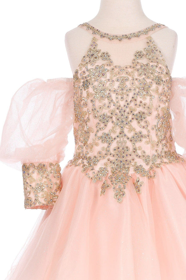 - Girls Applique Short Puff Sleeve Dress by Cinderella Couture 5113