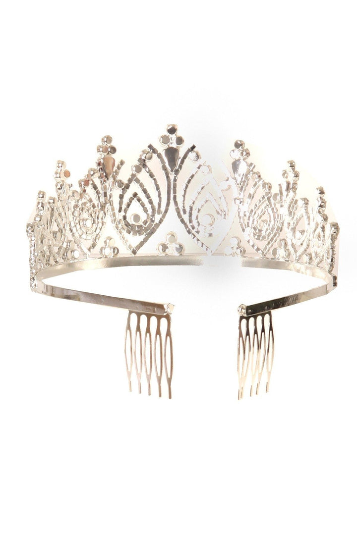 Your sweet girl will love to accessorize her outfit with this beautiful rhinestone tiara crown. The attached comb on each side will securely hold this crown in place.