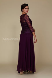 Long Lace Bodice Dress with 3/4 Sleeves by Nox Anabel 5083-Long Formal Dresses-ABC Fashion