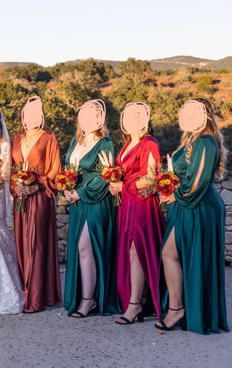 The colors are rich and the dress is absolutely stunning. FYI…Each woman had to size up 1 size.