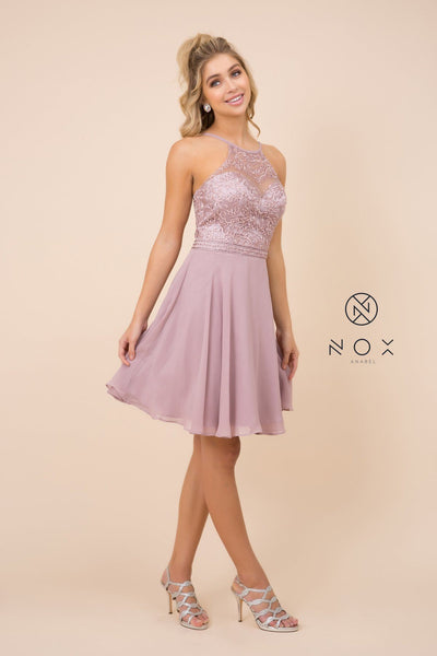 Short Chiffon Dress with Embroidered Bodice by Nox Anabel Y629